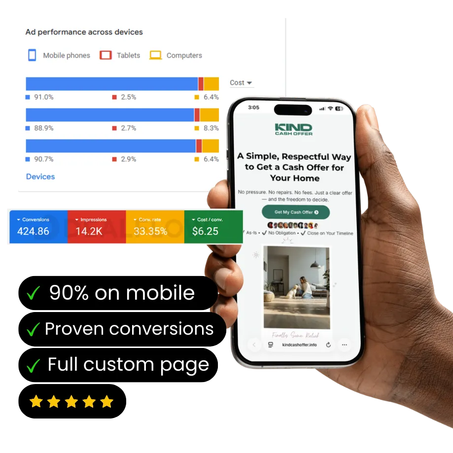 We guarantee execution, optimization, and clear communication. Results depend on your market, offer, and follow-up which we help you dial in.